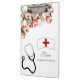 Tulipas Rosa Elegante, Floral & Stethoscope Enfermeiro Clipboard com buquê Tulip, Stethoscope, boné de enfermeira e um nome modelo. Um design perfeito para enfermeiras. Excelente também como presente de formatura ou presente de dia de enfermeira.Clique no botão personalizar para personalizá-lo com seu texto ou nome.Visite gentilmente minha loja " amor" para outros designs ou similares.