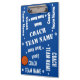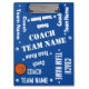 Personalize este conselho de clipe para o seu treinador e equipe favoritos. Equipe desportiva personalizada para personalizar com o nome do treinador e da equipe. Os treinadores usam pranchetas para manter notas e peças organizadas durante jogos e prática. Ajude um treinador de basquete a se organizar com uma área de transferência personalizada e personalizável. Crie um presente personalizado para o seu treinador favorito com o treinador de palavras em uma variedade de fontes em branco sobre fundo azul.