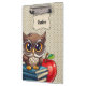 Esta área de transferência apresenta um padrão de ouro, adornada com uma coruja de livros e ilustração de maçã, perfeita para voltar à escola. Com um espaço dedicado para o nome do seu filho, este é realmente um tipo de suprimento escolar que eles usarão por anos para vir.