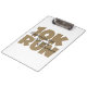 Texto bronzeado, com 10K de RUN e texto preto, com a seguinte redação: Determinação da Resistência na execução de T-shirts, capuzes, botões, bolsas, canecas, adesivos e outros produtos para qualquer pessoa que esteja a treinar ou já tenha gerido um 10K!