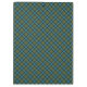 Padrão de xadrez tradicional em tons de azul e verde com realces vermelhos e amarelos.