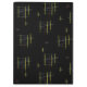 Gritos e linhas amarelos, burrentas e brancas em um padrão repetido em um fundo preto sugere uma sensação de movimento e energia.