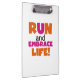 Se você gosta de correr, correr 5Ks, 10Ks, meia maratona, ou maratonas, você vai adorar este design de texto colorido em laranja e rosa quente que lê Run and Embrace Life! Corra e Abraça Camisas de Vida, capuzes, ímãs, botões, cartões, adesivos, correntes-chave e muitos outros itens para corredores que adoram um design brilhante e colorido!