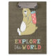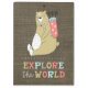 Estilo escandinavo Urso boho completo com quiver, com o texto multicolor "Explore the World" na burlap castanha rusticada para olhar para o fundo