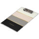 Uma adorável design de moda com elegância feminina, esta prancheta na moda tem listras modernas em preto, cinza, rosa-pincelado e branco-creme de casca-de-ovo. As linhas finas de ouro fino separam as cores no estilo do designer. Personalize com seu nome, monograma ou outro texto desejado. Você também pode excluir o nome de exemplo mostrado se preferir o item sem texto.