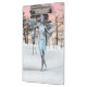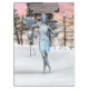 Renderização digital 3D de uma bela fada de gelo num fundo de floresta de inverno