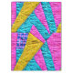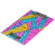 A manta de retalhos falsa inspirou padrões cor-de-rosa, amarelo e azul na frente e atrás com retângulo de cinza de nome na frente.