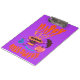 Ilustração original em ousado cor laranja moderna e roxa no estilo máximo com letras de mão assustadoras dizendo Feliz Dia das Bruxas vindo como vapor com pequenos fantasmas fofos de uma xícara de café de bruxa amante de gato com vidro venenoso venenoso, varinha mágica, abóbora e morcego voador nas costas.