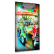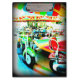 Uma foto retrógrada de uma cena de carnaval. Uma feliz circula composta por motocicletas. Uma viagem divertida e bons tempos no parque de diversões. Cores brilhantes e coloridas do carnaval com um olhar nostálgico agradável e datado.