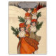 Lovely watercolor painting of five cute little girls in a snowy winter landscape, wearing warm winter coats and hats and furry muffs, carrying holly branches for Christmas. Vintage Christmas illustration by English artist Florence Hardy.
