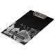 Fundo preto glamouroso com floral de cinza bonito e nome enquadrado na área de transferência de texto branco.