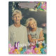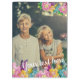 Você pode adicionar seus próprios foto e texto a este produto para personalizá-lo. No lado inferior e no canto direito superior há uma beira de flores bonitas, animados e de borboletas que moldam a foto. As flores são rosa, amarelo e azul com algumas folhas verdes. No centro das flores há umas formas da estrela do verde cor-de-rosa ou amarelo com um teste padrão de ponto. As borboletas são verdes, azul e rosa.