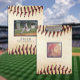 Aproveite este antigo design de tema de baseball com modelos de fotos na frente e atrás, assim como título, nome e número de camisa opcionais.