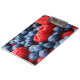 Este design apresenta uma imagem aproximada de framboesas e mirtilos, que são frutas saborosas e nutritivas. As framboesas são vermelhas e as mirtilas, como o nome sugere, são azuis. Encorajar uma alimentação saudável ou simplesmente apreciar a beleza das frutas naturais com esta design atraente e funcional!
