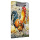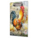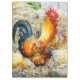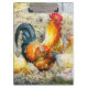 Um galo de galeria enquadrado por um bando de suas galinhas e feno em foco suave ao seu redor. Os amarelos e cinzentos gentis trazem o galo colorido para o centro da atenção, bem onde o pássaro orgulhoso gosta de estar. Este é um desenho mestiço em pasta de óleo e lápis colorido. Por Amanda Diehl, Designs Paxdomino
