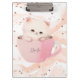 Adicione um toque de charme ao seu dia com esta adorável prancheta com um gato branco-rosa giro colado aconchegadamente numa xícara de chá branca. Perfeito para amantes de gatos e entusiastas de chá, este trabalho de arte delicioso combina doçura e elegância, fazer um presente ideal ou um presente para você mesmo!