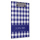 Área de transferência de padrão de gingham verificado, azul e branco, com um impressão de nome personalizado, na frente e no verso. Material de papelaria correspondente disponível.