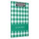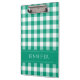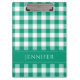 Área de transferência de padrão de gingham verificada, verde e branco clássico, com um impressão de nome personalizado nos lados frontal e traseiro. Material de papelaria correspondente disponível.