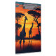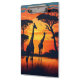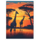 As silhuetas de duas girafas em um buraco de água, com baobás e o sol de fixação atrás delas, fazem uma bela e colorida prancheta. Perfeito para quem ama a vida selvagem, a natureza e o exterior.