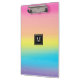 Um design arco-íris de cor aquosa, cor-de-água, com cores rosa, laranja, lacre, azul, roxo, verde e turquesa. Um design de prancheta monograma perfeito para meninas que amam cores do arco-íris.