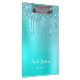 Esta bonito design de área de transferência apresenta uma massa aqua faux e uma textura metálica de brilho turquesa e uma elegante fonte de caligrafia.