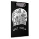 Add a spooky touch to your Halloween decor with this hand-drawn haunted house surrounded by flying bats. Perfect for prints, cards, stickers, or seasonal merchandise.