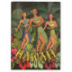 Hawaii Hula - Esta impressão de arte inspirada em vintage mostrando dançarinos de hula e palmeiras.