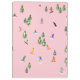 Arte legal de ilustração branca de snowboarders coloridos, descida de snowboard em montanhas entre pinheiros, spruce e pinheiros em pó fresco de neve. Snowboard e Xmas ao ar livre numa floresta de inverno. Dons do Snowboarder. Design de Natal da menina pastel cor-de-rosa