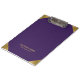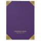 Imagem de um impressão de couro roxo com sotaque dourado nas esquinas.