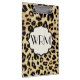 Ela está na moda e feroz como um animal selvagem. Este gráfico chic safari legal inclui um monograma de três letras onde a senhora pode adicionar um toque pessoal. Dourado, castanho, fundo de impressão do leopardo preto com um quadro em forma fofo e texto personalizável. Design Copyright © CuteComfy.com