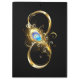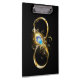 Símbolo Dourado e brilhante do infinito, decorado com pena de joalharia de pavão com turquesa sobre fundo preto.