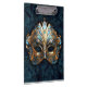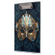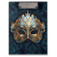 A beautifully ornate mask adorned with intricate blue-teal and damask patterns, featuring delicate scrollwork and gemstone-like accents. The design exudes an air of mystery and elegance, reminiscent of a Venetian masquerade.