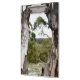 Esta imagem, tirada em Loddon, em Victoria, Austrália, retrata um close-up de um tronco de árvore vazio ou parcialmente queimado, formando uma paisagem verde e exuberante ao fundo. O latido da árvore tem uma mistura de áreas apagadas, apagadas e madeiras lisas e de cor clara, possivelmente devido a danos de fogo ou a decaimento natural. Através da abertura da árvore, são visíveis colinas rolantes cobertas de verde e árvores dispersas. O efeito geral cria uma estrutura natural, adicionando profundidade à composição, com o contraste entre o latido bruto, texturizado e a paisagem suave e distante.