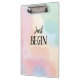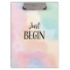 A gentle nudge to start where you are—this “Just Begin” quote design is set against a dreamy pastel watercolor background.