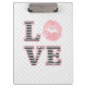 Este design apresenta um conjunto pastel de lábios e AMOR em um padrão listrado preto e branco.