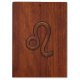 Um sinal de Leo Zodiac em uma mogno como fundo de impressão. Um design clássico de estilo rico para uma ideia de presente de aniversário personalizada de excelente. Use o link "Mensagem" para entrar em contato conosco com suas solicitações especiais de design ou para obter assistência com suas necessidades de personalização.
