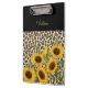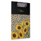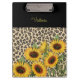 Impressão personalizada de animais-leopardo e prancheta de girassóis. Você será capaz de personalizar facilmente com um nome no fundo preto. Isso também daria um presente personalizado único para um professor, enfermeiro, agente imobiliário, etc.