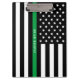 Mostre seu apoio com esta prancheta de bandeira americana, fina e esbranquiçada, linha verde e preta. Personalize substituindo o nome da amostra pelo nome de sua escolha, tanto na frente quanto no verso. Perfeito para os militares, guardas florestais, agentes de conservação e patrulhas fronteiriças.