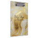 Um marfim de luxo e uma prancheta dourada marmoreada.