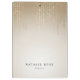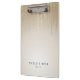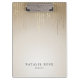A área de transferência personalizada Chic apresenta duas linhas de texto personalizado em letras negras clássicas, em um fundo ombre ouro adornado com fios de luzes de cordas de folhas falsas em ouro. Design repete-se no lado oposto.