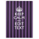 Um estilo personalizado de listras roxas de tendências decor Mantenha Calmo e Continuar dizendo em um presente personalizado. Humorístico ou caprichoso experimente suas palavras criativas nas duas linhas editáveis de texto. Lembre-se de usar letras CAPITAL para obter melhores resultados. Use o link "Perguntar a este Designer" para entrar em contato conosco com suas solicitações especiais de design ou para obter assistência com suas necessidades de personalização.