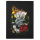 Arte vetorial original de uma mão segurando cartas de jogar que estão em chamas. Com moedas de ouro, dados, 8 Bola, Fita e rosa.