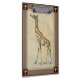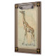 Este trabalho de arte agradará a qualquer viajante e amante de os animais do mundo. O fundo representa o mapa da África e há uma imagem de uma girafa em cima dela. Nesta imagem, as bordas fazem dela a peça decorativa perfeita.