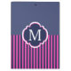 Padrão de listras azul e rosa quente com marinho na moda com monograma personalizável.