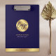 Crie pranchetas de marca para sua empresa usando este marinho elegante e design de ouro - excelente para promover sua empresa imobiliária, notária, arquiteta ou qualquer outra empresa profissional. A frente desta área de transferência de promocionais apresenta fundo azul marinho, seu logotipo e nome e um bar dourado falso com espaço para seu site. A parte traseira apresenta um fundo azul marinho com espaço para os seus detalhes de contato. Uma forma excelente de promover sua empresa ao fazer apresentações ou encontrar clientes, compradores potenciais e muito mais! — DIYMyDesignStore não é afiliado, patrocinado, conectado ou endossado de nenhuma forma com termos registrados mencionados neste modelo, incluindo os termos registrados REALTOR® ou REALTOR-ASSOCIATE® que sejam propriedade do respectivo titular de marca. O texto do marcador de posição é apenas um exemplo, é sua responsabilidade verificar o texto com cuidado e modificar qualquer parte dele para adequá-lo às suas necessidades e cumprir os regulamentos.