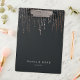 A área de transferência personalizada Chic para sua empresa ou escritório doméstico apresenta duas linhas de texto personalizado em caracteres brancos clássicos, em um plano de fundo preto suave e rico, com fios verticais de luzes de cordas de folhas rosa douradas falsas em cascata a partir do topo.