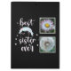 Ilustração cômoda e giratória com cabelo, pestanas, estrelas pequenas e dois modelos fotográficos. Clique em personalizar para alterar as fotos para a da sua irmã (fotos quadradas funcionam melhor) ou comprar-as como estão.