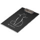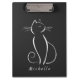 Gato branco minimalista numa prancheta preta. Personalize esta área de transferência elegante com seu nome.