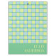 A modern checker clipboard featuring a creative checkerboard pattern in a pastel blue, green and lime color palette, with a green color block to personalize with your name on the front and back. You can also add a recipient’s name and gift it to someone special. A chic and trendy clipboard that feels modern, minimalist and beautiful to use and carry. Use it to hold notes or sketches while adding personality and creativity to your workspace. Thanks for viewing an Eria Daisy Art design!