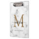 Modern Marble Gold Girly Script Monogram Clipboard